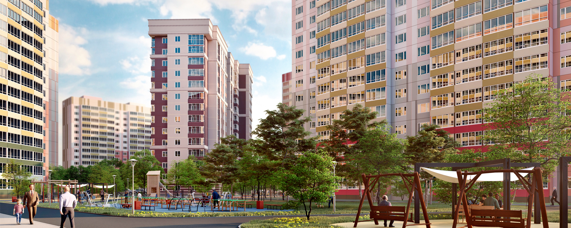 Мы комплексно подходим к застройке микрорайонов. Насыщаем объектами инфраструктуры и тщательно продумываем благоустройство придомовых территорий.